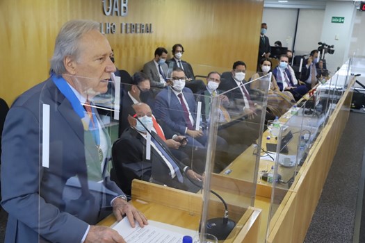 Em agradecimento, Lewandowski afirmou que nutre pela OAB estreita comunhão de valores. “São tempos difíceis nos quais assistimos, atônitos, à degradação de regimes democráticos, a intensificação da corrida armamentista, a disseminação dos conflitos regionais, a generalização das ofensas a direitos fundamentais e a aceleração da destruição do meio ambiente. Portanto, precisamos de coragem para enfrentar a visceral impermanência das coisas. A coragem de um Raymundo Faoro”, declarou o ministro.