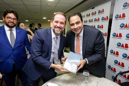 Na noite desta segunda-feira (14/3), durante a cerimônia de posse dos membros da Comissão Nacional de Estudos Constitucionais, o Conselho Federal da OAB promoveu o lançamento de livros sobre a história da democracia brasileira e o legado do constitucionalista Paulo Bonavides. A obra “Constitucionalismo e Estado Democrático de Direito: Estudos em homenagem a Paulo Bonavides” foi coordenada pelo presidente da OAB, Beto Simonetti, e pelo membro honorário vitalício Felipe Santa Cruz, e o título “O Colapso das Constituições do Brasil” é de autoria do professor Manoel Carlos de Almeida Neto. A cerimônia de lançamento das publicações foi realizada no 3º andar do edifício Sede da Ordem.