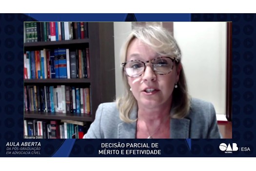 Na aula de quinta-feira (22/6) da pós-graduação em Advocacia Cível da Escola Superior da Advocacia (ESA Nacional), o tema abordado foi de suma importância para advogados e advogadas em busca de conhecimento sobre processo civil. A professora Rogéria Dotti discorreu sobre "Decisão Parcial de Mérito e Efetividade". A aula é gratuita e ministrada nos canais da ESA do YouTube e do Instagram.