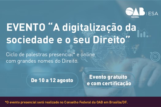 A ESA Nacional realizará, entre 10 e 12 de agosto, o seminário "A Digitalização da Sociedade e o seu Direito", em comemoração ao mês da advocacia. O evento, organizado pelo coordenador em Direito Digital da ESA Nacional, Ricardo Campos, tem como objetivo abordar a forma como os diversos setores da sociedade tem se adaptado à crescente digitalização. O seminário terá um olhar especial sobre como o direito tem exercido um papel importante na proteção de direitos e fomento à inovação dentro do processo de transformação social.