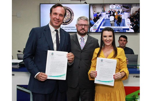 Na mesma sessão, Rafael Horn e a atual presidente da OAB-SC, Cláudia Prudêncio, foram homenageados pela Câmara Municipal de Tubarão em reconhecimento pelos relevantes serviços prestados à advocacia catarinense.