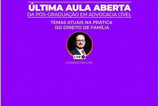 A Escola Superior de Advocacia (ESA Nacional) promove na próxima terça-feira (31/1) a última aula aberta da pós-graduação em Advocacia Cível. A transmissão será realizada a partir das 19h, nos canais da ESA no YouTube e no Instagram. A aula será ministrada pelo professor Conrado Paulino e abordará o assunto “Temas atuais na prática do direito de família”.
