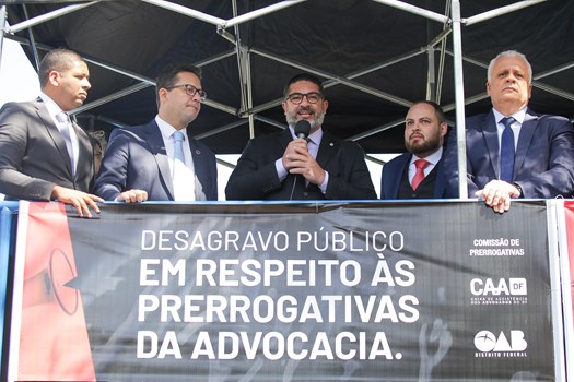 Em maio, o Conselho Pleno da Ordem e a seccional do Distrito Federal promoveram um grande ato em frente à sede da Polícia Civil, em Brasília, em desagravo público ao advogado José Souza de Lima. Ele foi alvo de pedido de prisão preventiva feito pelo delegado que atuava em uma investigação contra um representado pelo profissional.
