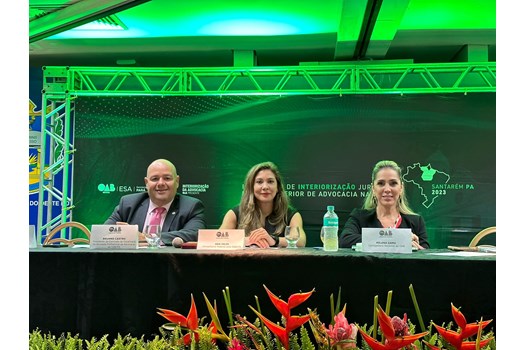 Juliana Pacheco, especialista em Marketing Jurídico e Consultora em Gestão Legal, Ana Ialis, conselheira federal pela OAB-PA e secretária adjunta da Comissão Nacional de Relações Institucionais, e Brunno Castro, presidente da Comissão de Fiscalização da Atividade Profissional da Advocacia, também compuseram o painel de debate.