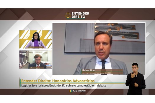 No Mês da Advocacia, o programa Entender Direito, da TV Justiça, trouxe para o centro do debate os honorários advocatícios e sua importância para a classe. O vice-presidente nacional da OAB, Rafael Horn, e o procurador adjunto da Procuradoria Especial de Defesa dos Honorários Advocatícios do CFOAB, Sergio Ludmer, participaram da entrevista.
