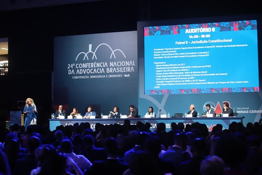 A jurisdição constitucional foi um dos temas debatidos na 24ª Conferência Nacional da Advocacia e reuniu especialistas para falar sobre as muitas interpretações da lei, nesta segunda-feira (27/11). O conselheiro federal do Distrito Federal e membro da Comissão Nacional de Estudos Constitucionais Francisco Queiroz Caputo Neto considerou as colocações importantes e ricas, com participação de nomes extraordinários do mundo jurídico. Ele abriu o painel “Jurisdição Constitucional” e conduziu os trabalhos junto com o relator, o conselheiro federal de Alagoas Marcos Barros Méro Júnior, e a conselheira federal do Distrito Federal Nicole Carvalho Goulart, secretária da mesa.