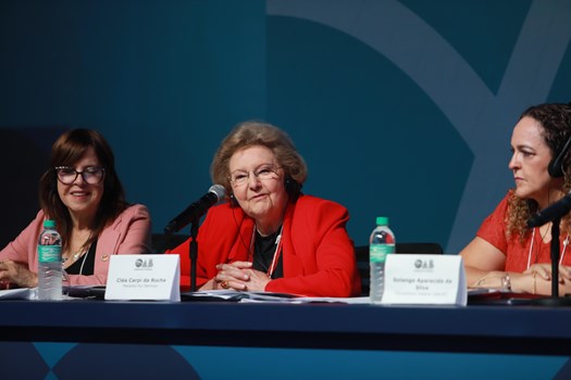 A medalha Rui Barbosa Cléa Carpi da Rocha presidiu a mesa e logo declarou a importância da Ordem para os profissionais da classe. “Em todo o mundo não há nenhuma entidade como a nossa, a única que tem seu papel reconhecido na Constituição”, disse. O debate teve como relatora a vice-presidente da OAB-RS, Neusa Bastos, e, como secretária, a conselheira federal da Ordem Solange Aparecida da Silva.