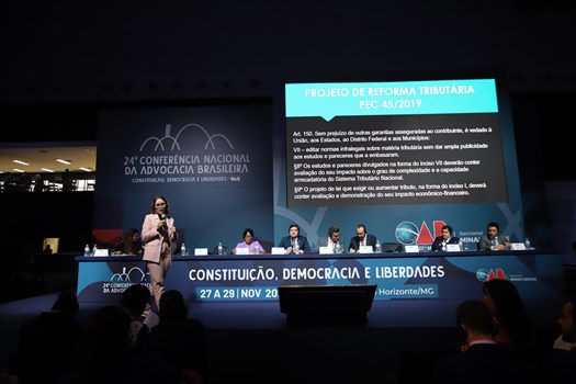 A Proposta de Emenda à Constituição (PEC) 45/2019, da reforma tributária, aprovada neste mês pelo Senado Federal, foi debatida no painel “Reformas, democracia e liberdades na tributação”, nesta quarta-feira (29/11), durante a 24ª Conferência Nacional da Advocacia Brasileira.