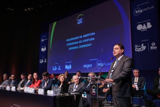 O presidente do Comitê Executivo para a Implementação do Legal G20 e membro honorário vitalício da OAB, Marcus Vinicius Furtado Coêlho, defendeu a importância da advocacia como instrumento de garantia da integração entre os países integrantes do Legal G20, em áreas que vão além da esfera jurídica, como a política, econômica, social e diplomática. “Somente com regras jurídicas claras, com segurança jurídica é que teremos um ambiente propício para o desenvolvimento econômico, social e humano de todas as nações”, disse.