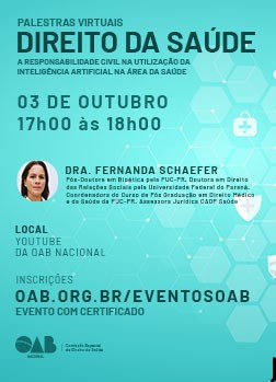 A 2ª edição do evento tratará do tema “A responsabilidade civil na utilização da Inteligência Artificial na área da saúde”. Sob a condução da advogada Fernanda Schaefer, pós-doutora em Bioética pela PUC-PR e doutora em Direito das Relações Sociais pela Universidade Federal do Paraná (UFPR), a palestra ocorrerá na próxima quinta-feira (3/10), das 17h às 18h.