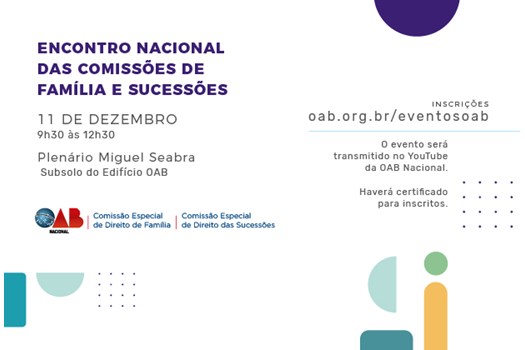 Com o objetivo de promover a troca de experiências e aprimorar a atuação de advogados e advogadas em todo o Brasil, o Conselho Federal da OAB promoverá o Encontro Nacional das Comissões de Família e Sucessões, em 11 de dezembro. O evento, que acontecerá no edifício histórico da Ordem, das 9h30 às 12h30, também será transmitido pelo canal do CFOAB no YouTube.