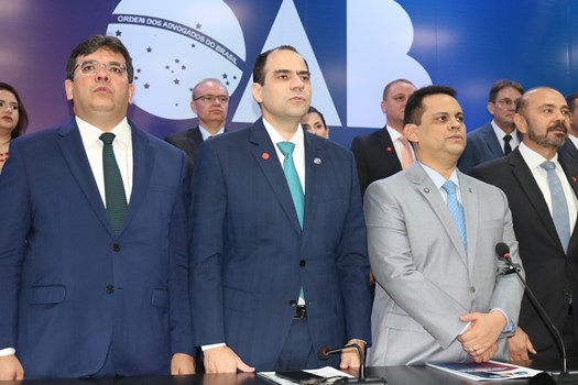 Em cerimônia realizada neste sábado (8/2), a OAB empossou a nova diretoria da seccional piauiense para o triênio 2025-2027. Na ocasião, o presidente nacional da Ordem, Beto Simonetti, saudou o presidente eleito Raimundo de Araújo da Silva Júnior, que estará à frente da entidade pelos próximos três anos, e reafirmou a defesa dos direitos da classe, especialmente a sustentação oral.