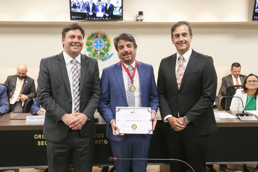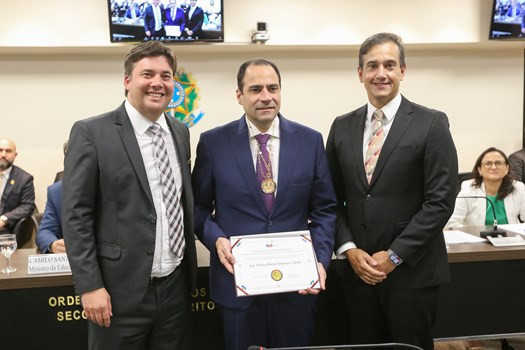 Em reconhecimento às suas relevantes contribuições para a educação jurídica no país, o presidente do Conselho Federal da OAB, Beto Simonetti, e o ministro da Educação, Camilo Santana, receberam o Grão-Colar do Mérito Educacional da Escola Superior da Advocacia Nacional (ESA Nacional) Maria Augusta Saraiva. A condecoração foi entregue nesta segunda-feira (7/4) pelo diretor-geral da ESA Nacional, Gedeon Pitaluga, e pelo diretor-geral da Faculdade OAB Nacional, Ronnie Preuss Duarte, durante sessão do Conselho Pleno.
