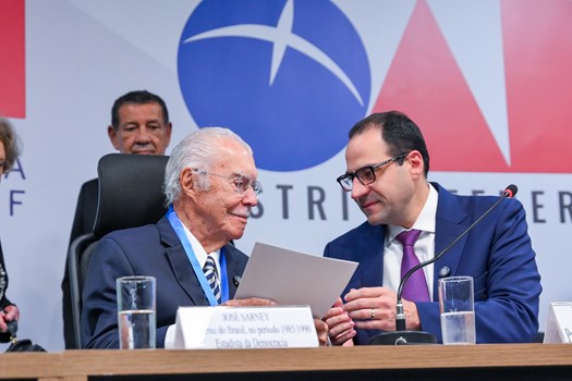 O presidente da entidade explicou que a concessão da comenda expressa, ao mesmo tempo, reconhecimento e memória. “Reconhecimento por sua liderança na reconstrução democrática do Brasil. Memória, porque sua presença é indissociável da narrativa constitucional do país”, pontuou, lembrando aos presentes que coube ao presidente Sarney conduzir a transição democrática, convocar a Assembleia Nacional Constituinte e garantir, “com coragem e equilíbrio”, a promulgação da Constituição de 1988.