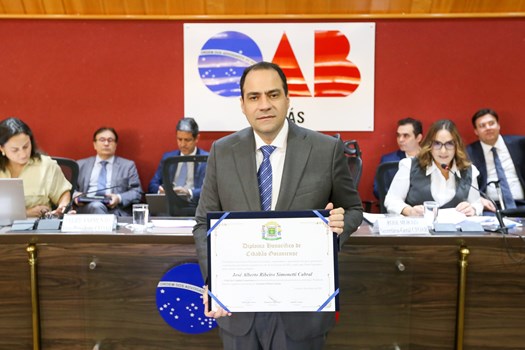 O presidente nacional da OAB, Beto Simonetti, recebeu nesta segunda-feira (26/5) o Troféu Alberto Simonetti Filho, que celebra personalidades que contribuem de forma relevante para a advocacia nacional. A honraria foi entregue durante a sessão do Conselho de maio, realizada na OAB-GO, em Goiânia.
