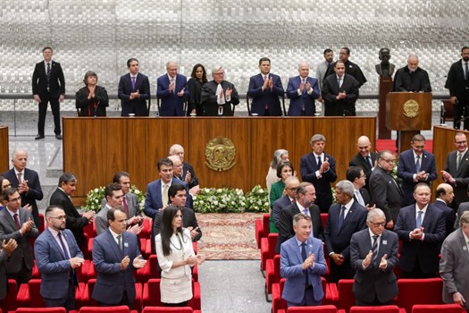 Entre as autoridades presentes estavam os ministros do STF Cármen Lúcia, Alexandre de Moraes, Luiz Fux, Cristiano Zanin e Nunes Marques; o ministro da Justiça e Segurança Pública, Ricardo Lewandowski; o governador do Distrito Federal, Ibaneis Rocha; e o ex-presidente da República José Sarney; além de outras autoridades do Poder Legislativo, Executivo e do próprio Judiciário.