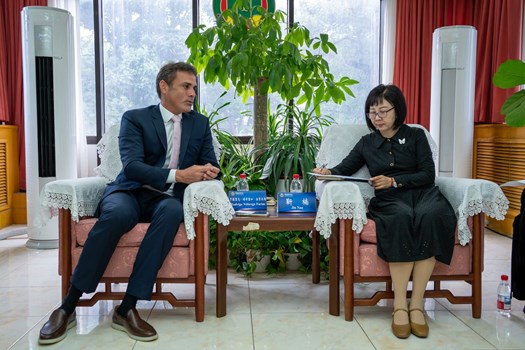 A comitiva brasileira foi recebida pelos representantes da entidade chinesa: Jin Nan, conselheiro sênior; Zuo Jin, diretor da Primeira Divisão do Departamento Internacional; He Peng, diretor da Segunda Divisão do Departamento Internacional; e Li Lingyi, pesquisadora da Primeira Divisão do Departamento Internacional.