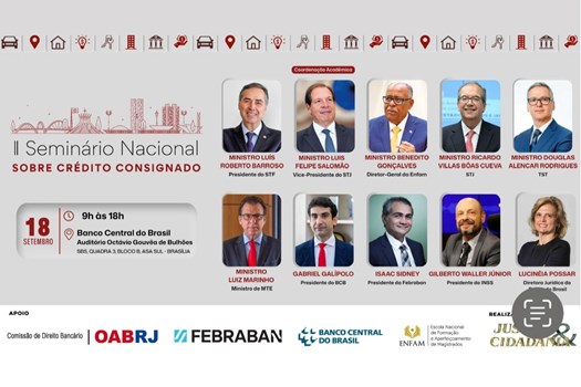 Estão abertas as inscrições para a segunda edição do Seminário Nacional sobre Crédito Consignado, que será realizado pela revista Justiça & Cidadania na próxima quinta-feira (18/9). Com o objetivo de trazer soluções para a judicialização em massa que envolve a contratação de crédito consignado no Brasil e debater o impacto jurídico-econômico do instrumento, o evento será realizado no auditório do Banco Central, em Brasília (DF).