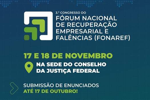 O Conselho Nacional de Justiça (CNJ) promove, nos dias 17 e 18 de novembro, em Brasília (DF), o Congresso Anual do Fórum Nacional de Recuperação Empresarial e Falências (Fonaref). O evento ocorrerá na sede do Conselho da Justiça Federal (CJF) e reunirá magistrados, membros do Ministério Público, da Defensoria Pública, da advocacia, administradores judiciais, acadêmicos e representantes de instituições financeiras.
