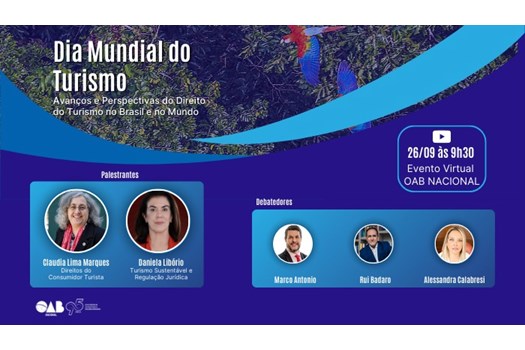 O Conselho Federal da OAB realiza nesta sexta-feira (26/9) o Congresso Digital Avanços e Perspectivas do Direito do Turismo no Brasil e no Mundo. A iniciativa marca o Dia Mundial do Turismo e será transmitida ao vivo no canal da OAB Nacional no YouTube, a partir das 9h30.