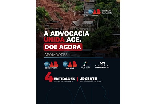 Diante da tragédia provocada pelas fortes chuvas na Zona da Mata mineira, especialmente em Juiz de Fora, o Conselho Federal da OAB e a seccional de Minas Gerais uniram-se à campanha de solidariedade coordenada pelo Tribunal Regional do Trabalho da 3ª Região (TRT-3). A mobilização reúne instituições públicas e privadas em uma força-tarefa voltada ao atendimento emergencial das famílias atingidas.