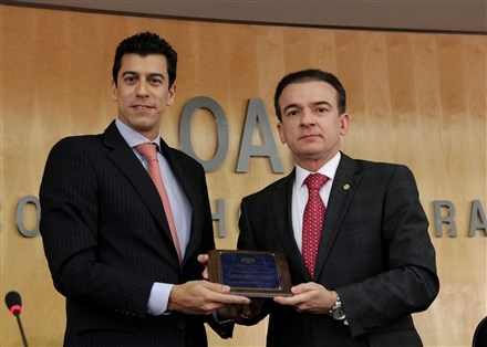 Brasília – O presidente nacional da Ordem dos Advogados do Brasil (OAB), Ophir Cavalcante, recebeu hoje (02) do ex-presidente da Federação Interamericana de Advogados (FIA), André de Almeida, placa em agradecimento aos trabalhos e parcerias desenvolvidas pela OAB junto à FIA no período em que Almeida esteve à frente da FIA – de 2010 a 2012. A placa foi entregue durante a sessão plenária da OAB, que acontece em Brasília.