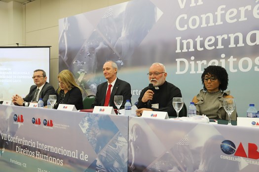 Fortaleza (CE) – Os primeiros fóruns de debate da VII Conferência Internacional de Direitos Humanos aconteceram na manhã desta quinta-feira (24). As cinco salas receberam os participantes, que puderam debater com os palestrantes acerca do tema de cada mesa. O diretor-tesoureiro da OAB Nacional, Antonio Oneildo Ferreira, proferiu palestra no Fórum 5, que debateu o direito à terra, povos indígenas e resistência.