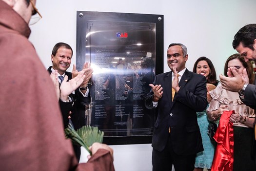 Após os discursos na solenidade, o Frei Ricardo Regis fez as bênçãos nas instalações da casa da advocacia e os advogados e advogadas se dirigiram para o descerramento da placa da Nova Sede da Ordem cearense.