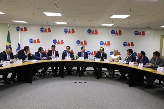 A reunião foi comandada pelo presidente do colegiado e conselheiro federal pelo Amapá, Felipe Sarmento, acompanhado do diretor-tesoureiro da OAB nacional, José Augusto Araújo de Noronha, do secretário-geral da OAB nacional, José Alberto Simonetti, do secretário-geral adjunto, Ary Raghiant Neto, e do vice-presidente da OAB nacional, Luiz Viana.