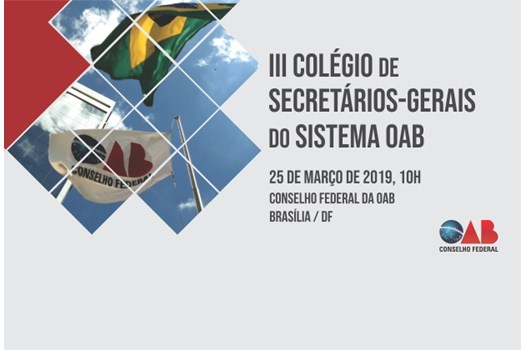 O Conselho Federal da OAB realiza no dia 25 de março o III Colégio de Secretários-Gerais do Sistema OAB. O encontro está marcado para começar às 10h da manhã e vai reunir pela primeira vez os secretários-gerais das atuais gestões do Conselho Federal e das Seccionais da Ordem nos Estados.