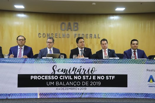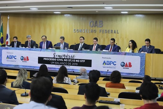 A OAB Nacional sediou, nesta quarta-feira (4), um seminário para debater os aspectos dos principais julgamentos na esfera do processo civil realizados no Supremo Tribunal Federal (STF) e no Superior Tribunal de Justiça (STJ) ao longo de 2019. O evento foi promovido pela Associação Brasiliense de Direito Processual Civil (ABPC) em parceria com o Conselho Federal.