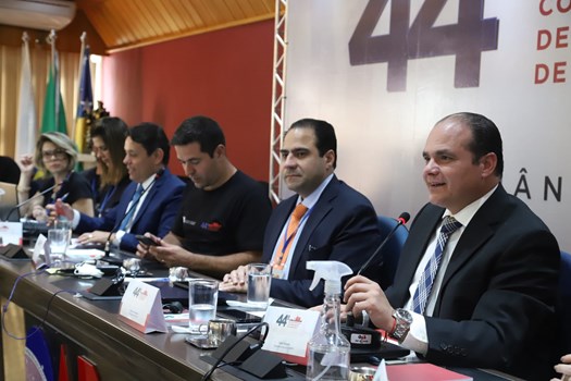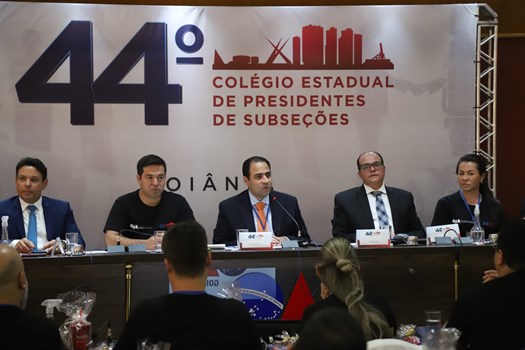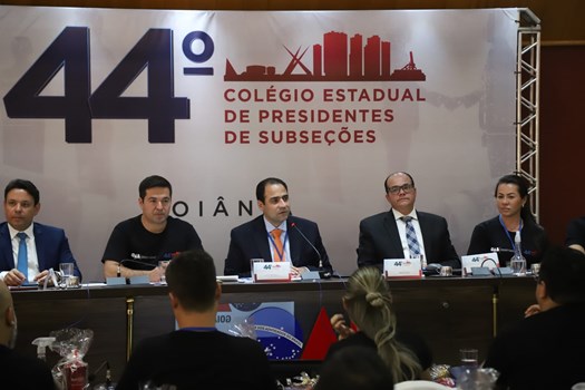 O presidente nacional da OAB, Beto Simonetti, o diretor-tesoureiro, Leonardo Campos, e o coordenador nacional de Interiorização da Advocacia, João de Deus Quirino Filho, apresentaram à advocacia goiana, na manhã desta terça-feira (13/9), o Plano Nacional de Interiorização da Advocacia. Eles explicaram os objetivos e as ações da iniciativa na abertura do 44º Colégio de Presidentes de Subseções da OAB-GO, em Goiânia.