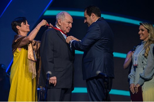 Durante a abertura da 24ª Conferência Nacional da Advocacia Brasileira, ocorrida no Expominas, em Belo Horizonte (MG), nesta segunda-feira (27/11), a OAB outorgou a Medalha Rui Barbosa ao membro honorário vitalício da instituição Bernardo Cabral. A homenagem foi entregue pelo presidente da Ordem, Beto Simonetti, e pela secretária-geral do Conselho Federal, Sayury Otoni.