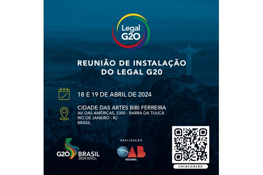 Será realizado em abril o Encontro Inaugural de Instalação do Legal G20. O grupo agregará entidades jurídicas de diversos integrantes das 19 maiores economias do mundo mais a União Africana e União Europeia e será criado a partir da necessidade de uma intersecção mais efetiva entre o G20 e o universo jurídico. O evento, que será realizado entre 18 e 19 de abril, na Cidade das Artes Bibi Ferreira, no Rio de Janeiro, contará com a palestra inaugural proferida pelo ministro da Justiça e Segurança Pública, Ricardo Lewandowski.