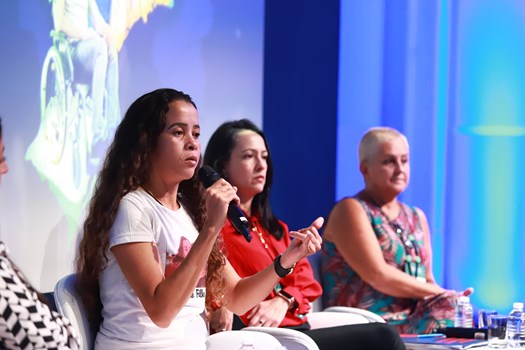 A ativista antirracista da ONG Redes da Maré Bruna Silva levou um relato pessoal e comovente sobre violência policial. "Sou mãe de um filho vitimado e morto pelo Estado, de uma operação ilegal na minha favela, onde meu filho foi morto a caminho da escola", relatou Bruna, que, além do luto, sofre com a criminalização do seu filho para justificar sua morte. "Não bastou o Estado matar, teve que criminalizar para justificar a morte. Isso me deu ânimo para gritar pelo meu filho e pelos nossos filhos", declarou.