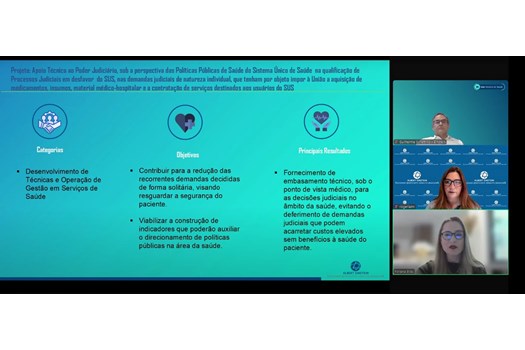 Coube à médica Poliana Blasi apresentar o projeto de apoio técnico do Albert Einstein ao Poder Judiciário, nas demandas de judicialização desfavoráveis ao SUS, em que são pleiteados medicamentos e procedimentos médicos, entre outras solicitações. “Nós nos orgulhamos muito de fazer parte desse projeto, que presta um apoio técnico e preciso aos magistrados, para que a tomada de decisão deles seja bem fundamentada. Levando em conta o mais importante, que é o bem-estar do paciente”, ressaltou a especialista.