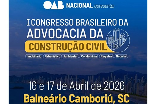 O Conselho Federal da OAB realizará, nos dias 16 e 17 de abril, o 1º Congresso Brasileiro da Advocacia da Construção Civil, no Expocentro, em Balneário Camboriú (SC). Com o tema “Segurança Jurídica para o Desenvolvimento Imobiliário”, o evento reunirá especialistas de diferentes áreas ligadas ao setor, com foco nos desafios atuais e nas perspectivas de aprimoramento do ambiente regulatório.